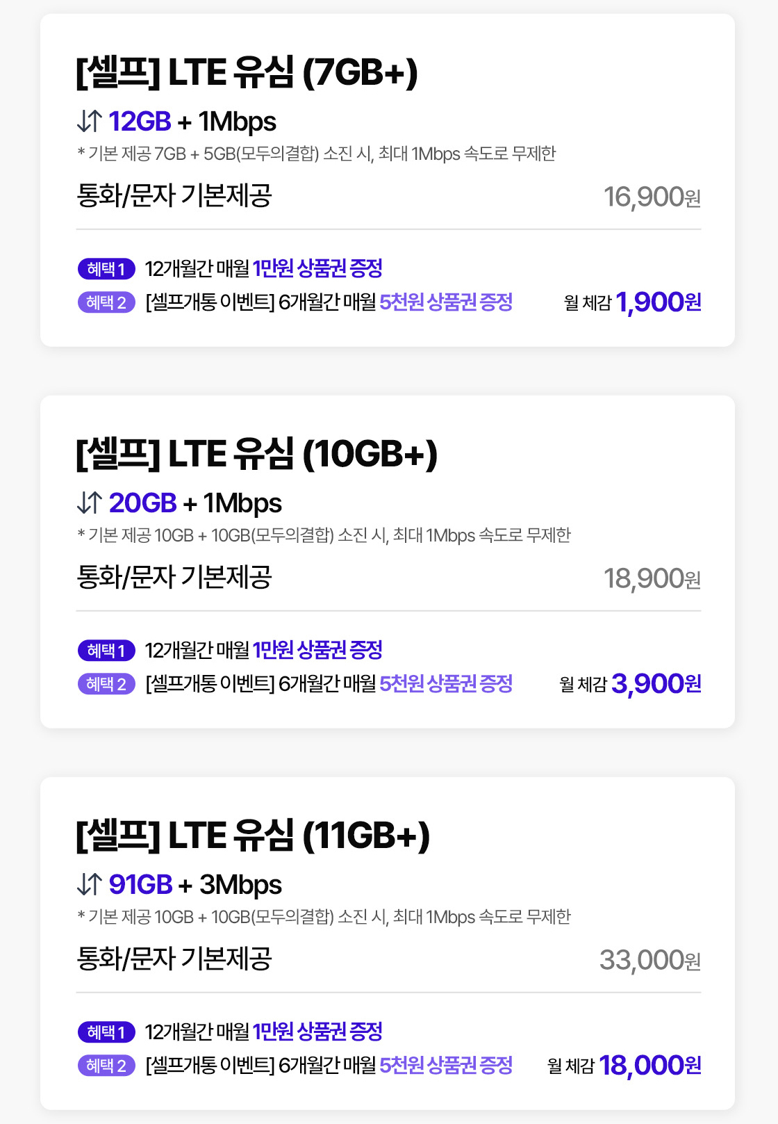 [셀프] LTE 유심 (7GB+), LTE 유심 (7GB+/통화맘껏), [셀프] LTE 유심 (10GB+), LTE 유심 (10GB+/통화맘껏), [셀프] LTE 유심 (15GB+/300분), LTE 유심 (15GB+/300분), [셀프] LTE 유심 (15GB+/100분), LTE 유심 (15GB+/100분), [셀프] LTE 유심 (11GB+), LTE 유심 (11GB+/통화맘껏), [셀프] LTE 유심 (100GB+), LTE 유심 (100GB+/통화맘껏) ​​